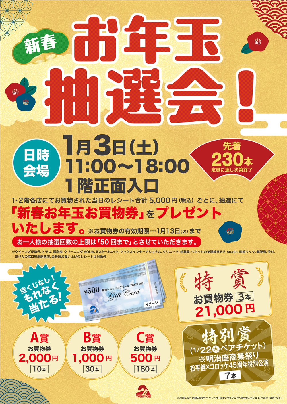 | 特賞 | お買物券 ¥21,000円 3本 |